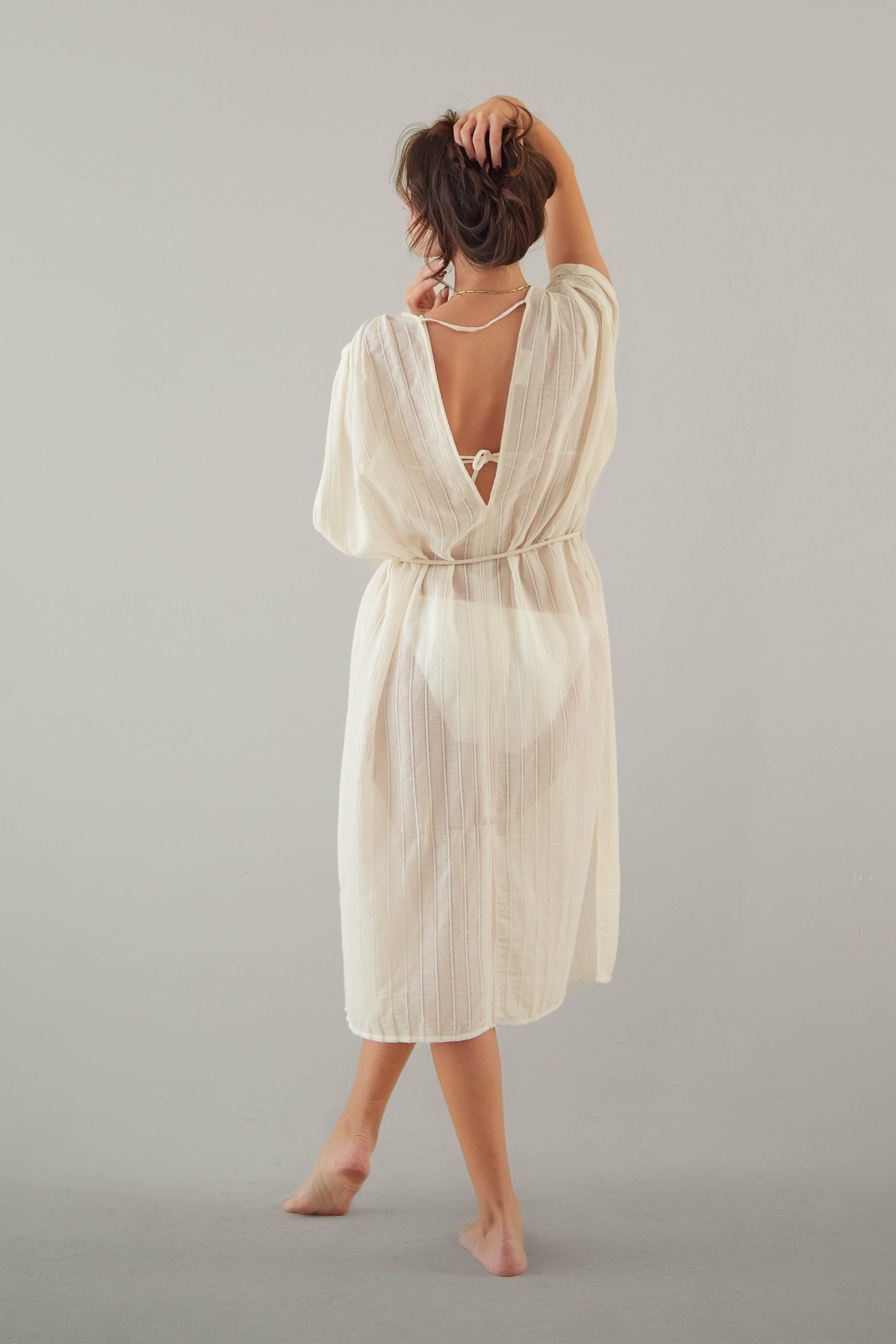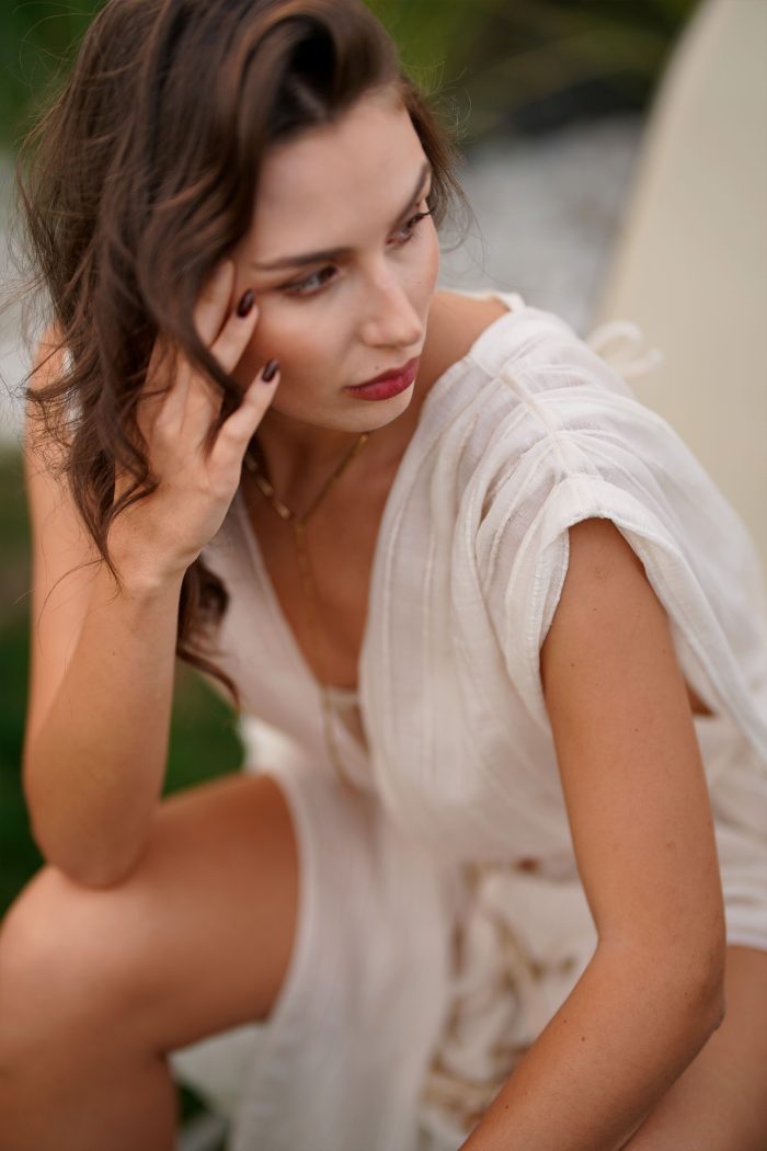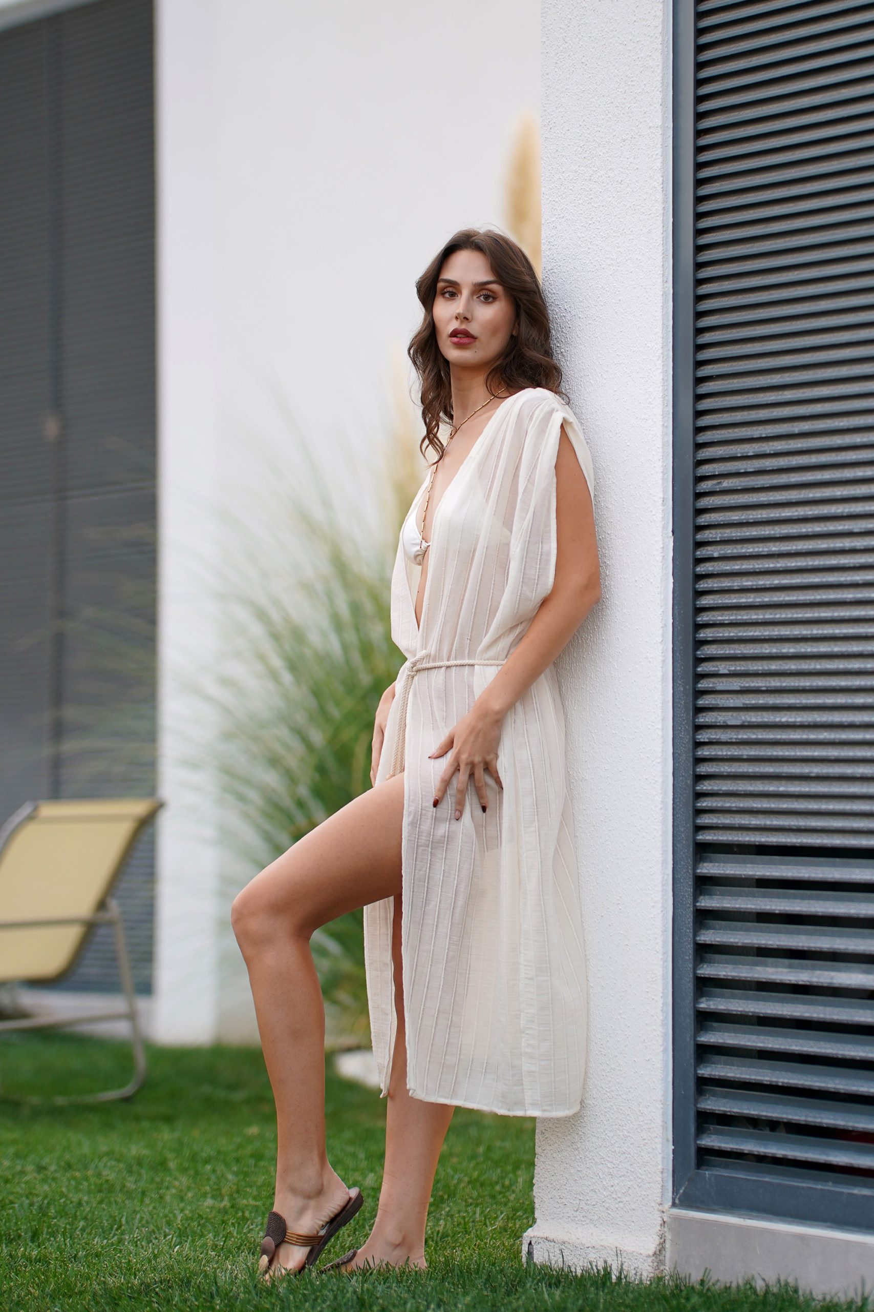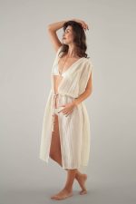 Viaanka’ya özel dokunan %100 pamuk vualin ipeksi ve nefes alan dokusu, yazın en saf halini modern bir formla buluşturuyor. OEKO-TEX sertifikalı üretimimiz ve tamamen organik boyama süreçlerimizle hazırlanan bu kaftan, kimyasaldan arındırılmış bir şıklık vaat ediyor. Belindeki doğal halat detayı ve yanlardaki özgürlük sunan yırtmaçlarıyla, kumsaldan gün batımı davetlerine uzanan zahmetsiz bir zarafetin en doğal yansıması.